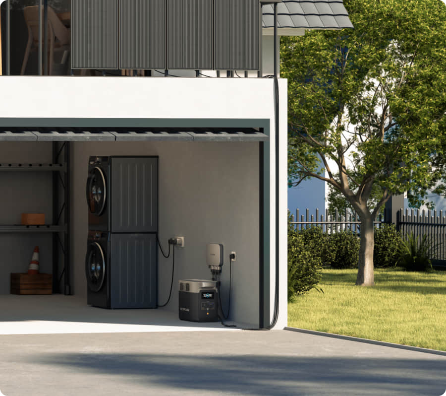 Estación de energía portátil EcoFlowLos inversores PowerStream son compatibles con todas las estaciones de energía portátiles EcoFlow. Disponemos de baterías con capacidades desde 256 Wh hasta 25 kWh para que pueda elegir la más adecuada para su hogar. Cuando se produzca un apagón, tenga la tranquilidad de tener en funcionamiento no solo sus dispositivos esenciales, sino también los electrodomésticos que consumen más energía, como las lavadoras.